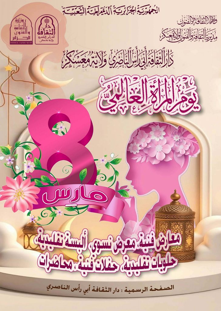 أعلام المنطقة النشاطات الثقافية الواجهةالبرنامج الثقافي و الفني الخاص باحتفالات اليوم العالمي للمرأة الموافق لــ 08 مارس 2026 by adminمارس 4, 2026مارس 10, 202604 Share0